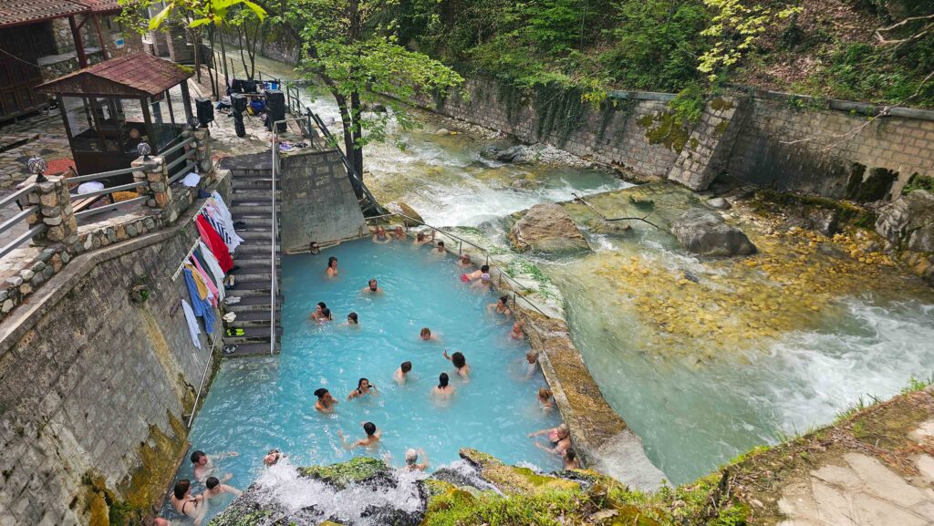 Termálne kúpele v prírode s horúcou vodou, bazénmi a riekou. Ideálne na oddych a ľahkú turistiku.