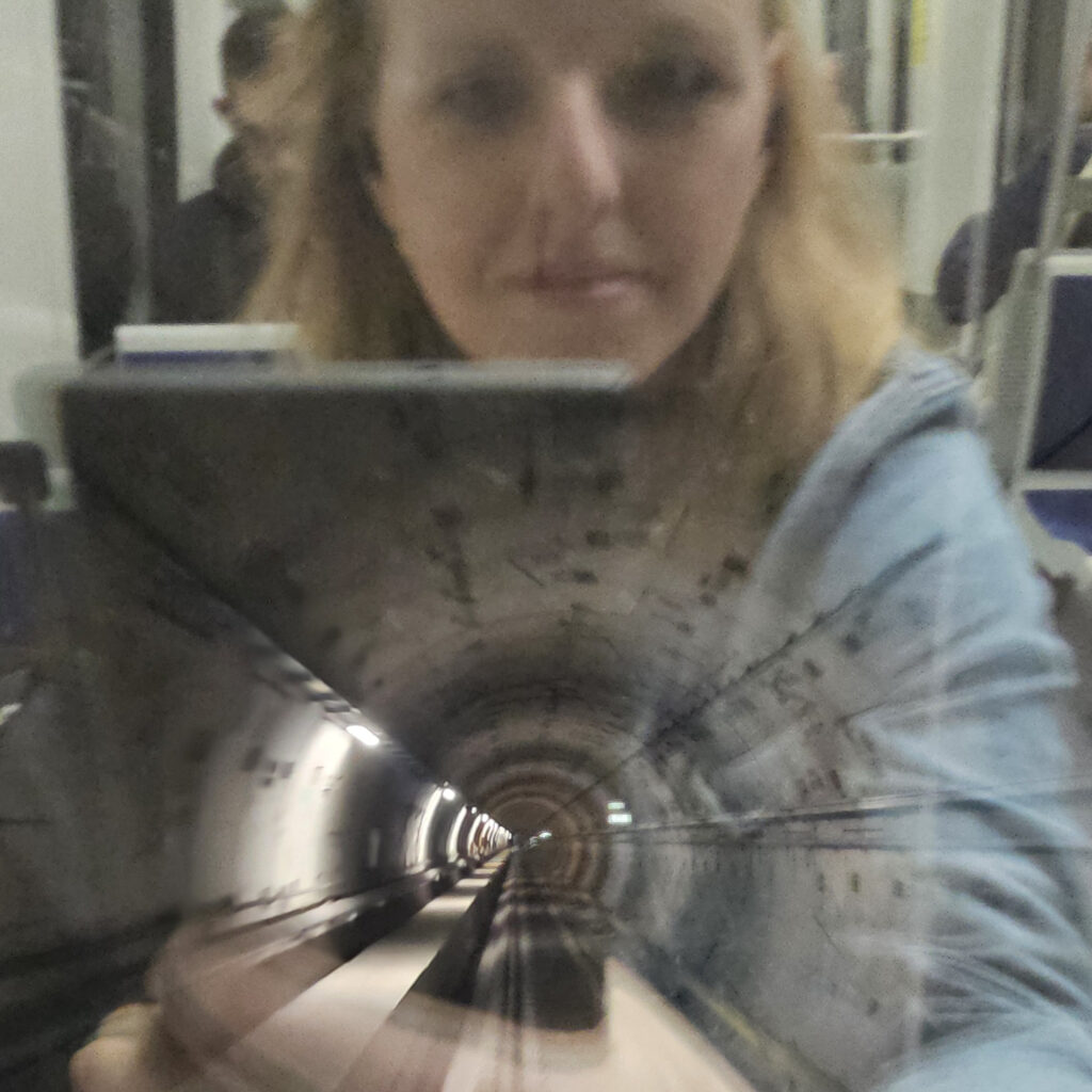 Predná a zadná časť súpravy sú presklené, takže počas jazdy vidíš, ako si vozidlo razí cestu cez tunel.