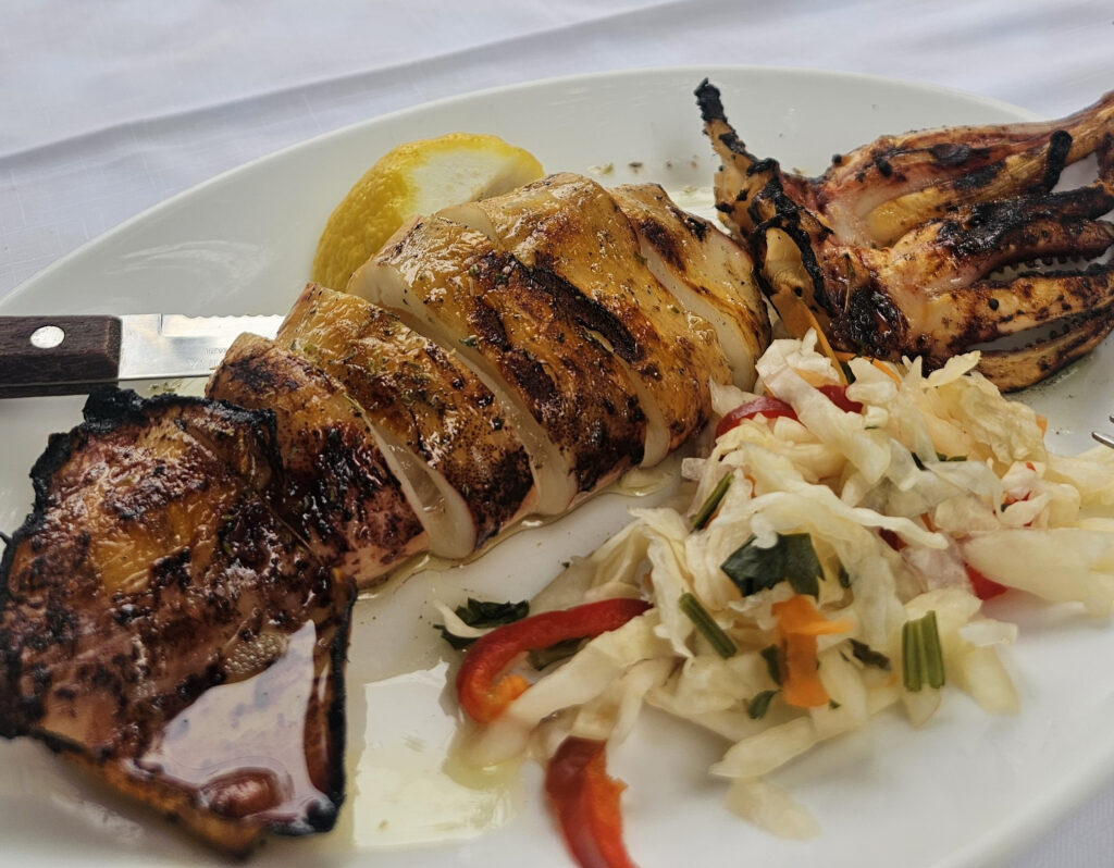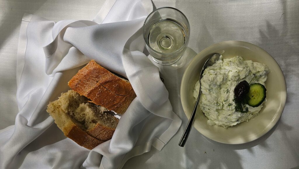 Nájdeš lokálne reštaurácie ako Tsinari, kde som platila 17 € za predjedlo, nápoj a hlavné jedlo, a ešte som dostala dezert ako pozornosť.