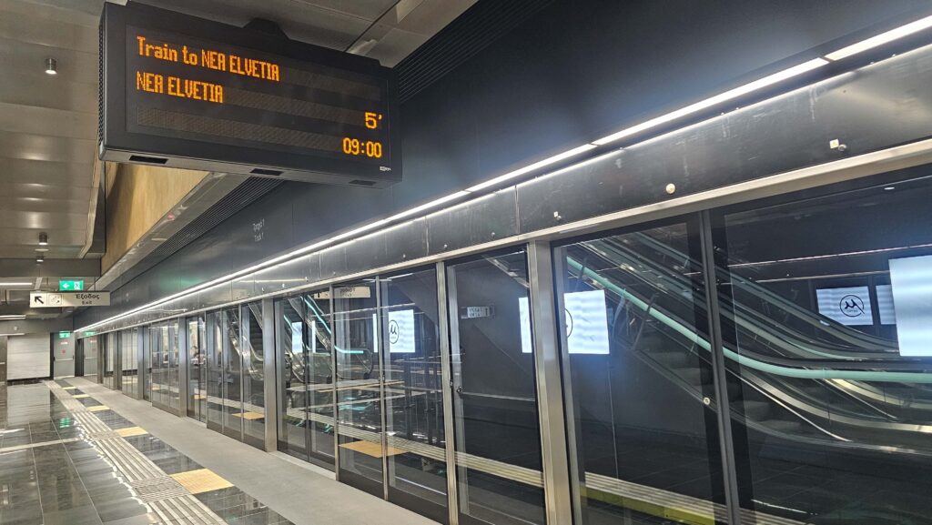 Od začiatku mesta (železničná stanica) po jeho koniec (Nea Elvetia) ním trvá cesta cca 21 minút.